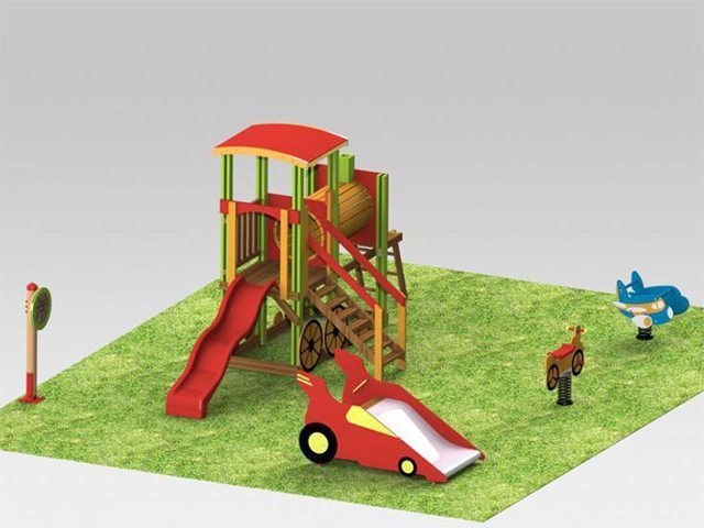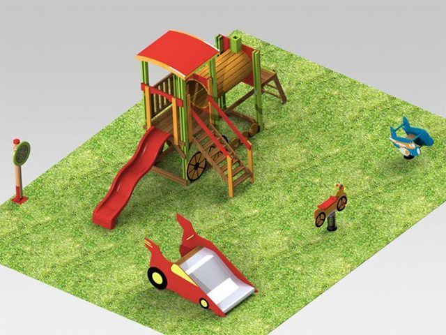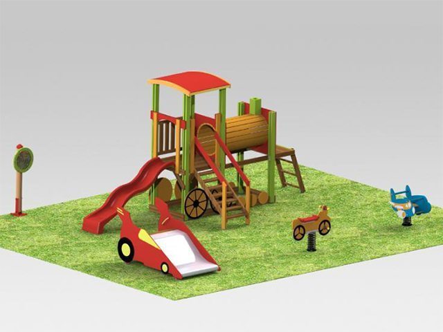 Descriere:Acest parculeţ are cinci componente: un tobogan în formă de masina de curse, un ansamblu de joacă cu tema trenulet, un balansoar pe arc avion, un balansoar pe arc motocicleta si un panou cu joc de inteligenta labirint. Ocupă suprafaţa de 58.48 metri pătraţi, include suprafaţa de siguranţa şi este destinat copiilor cu varste intre 1 si 12 ani.