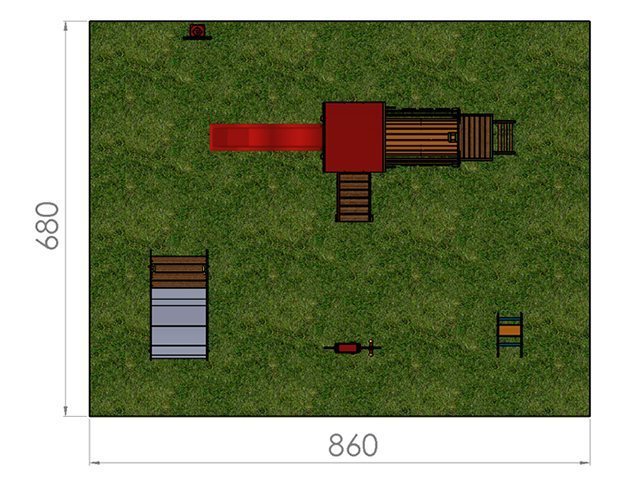 Materiale utilizate:Structura locului de joacă este din lemn de pin. Elementele de conectare sunt confecţionate din metal galvanizat şi nu permit dezasamblarea făra instrumente specifice. Toate elementele metalice utilizate în construcţia echipamentului sunt protejate împotriva intemperiilor prin aplicarea unor vopsele non toxice.