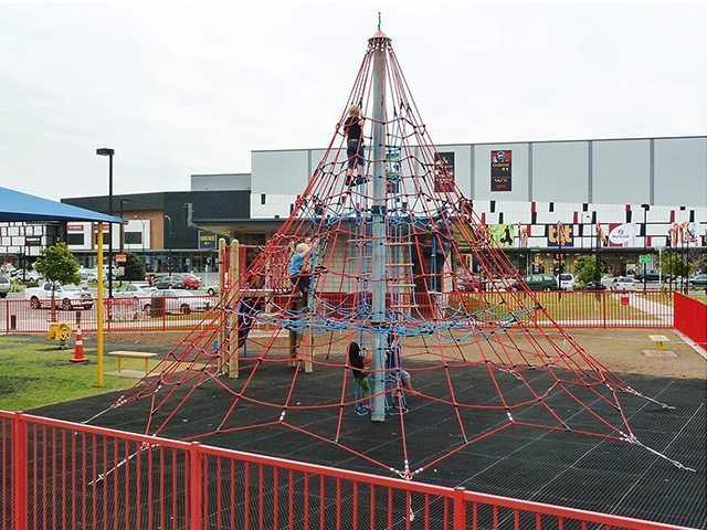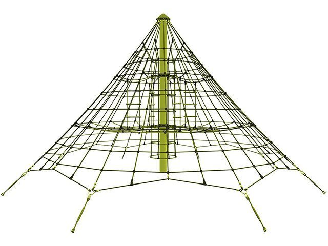 Cataratoare cu franghii tip piramida, cu stalp metalic de sustinere in partea centrala, cu plase de catarare atat in exterior cat si in interior, cu niveluri diferite de dificultate, ancorata in opt puncte. Echipament produs în Germania.